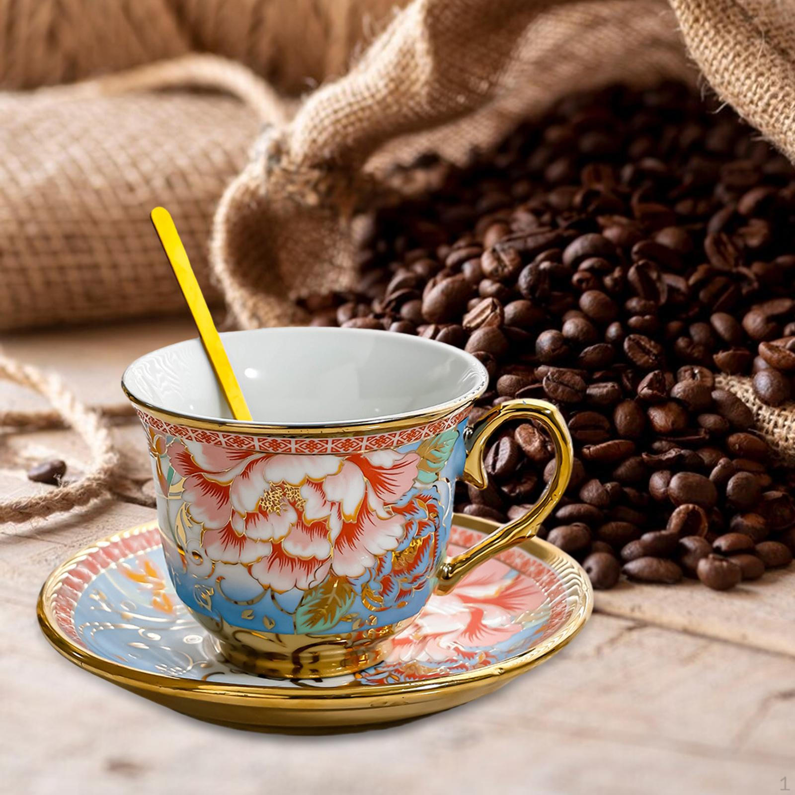 Керамический набор для послеобеденного чая с блюдцем и кофейной чашкой объемом 7 унций с золотым краем для эспрессо