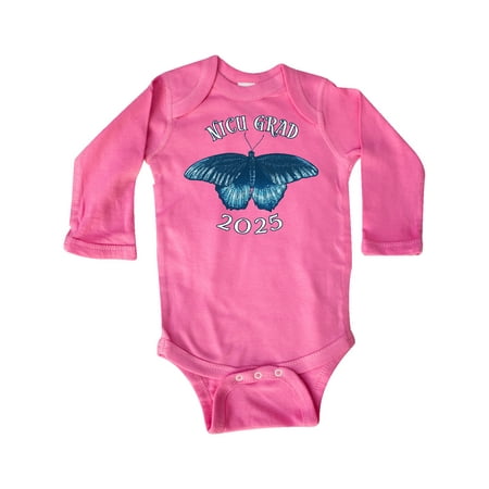 Inktastic NICU Grad 2025 with Blue Butterfly Gift Baby Boy or Baby Girl Long Sleeve Bodysuit