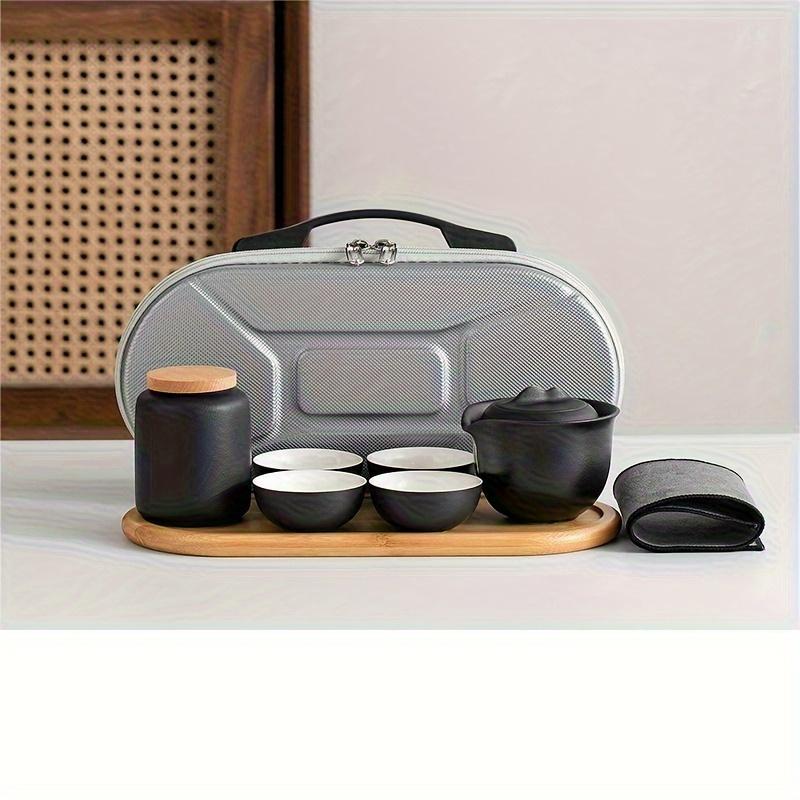 Керамический чайный сервиз, 5 шт., портативный дорожный чайный сервиз с подносом для чая, уличный чайник и чашки для чая, в комплект входят один горшок и четыре чашки, сумка для чайной банки, праздничные подарки, чайный кондиционер