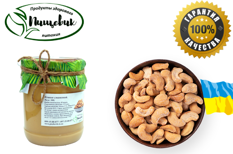 Паста кешью - это паста изготовлена из смеси обжаренных орехов кешью, которые были тщательно измельчены для получения отличного вкуса и текстуры. Паста богата белком, не содержит соль, сахар или пальмовое масло и является натуральным лакомством для поддержания ваших сил во время тренировочного процесса. Она является естественным источником белка, углеводов и жиров. Кроме того, паста содержит высокое содержание Omega-3 и Omega-6 жирных кислот, клетчатки, витаминов (E, B) и минералов (магний, фосфор, железо, цинк, медь и марганец). Паста изготовлена на 100% из орехов кешью без добавок, консервантов, соли, сахара и пальмового масла. Она имеет нежный вкус и приятную консистенцию.