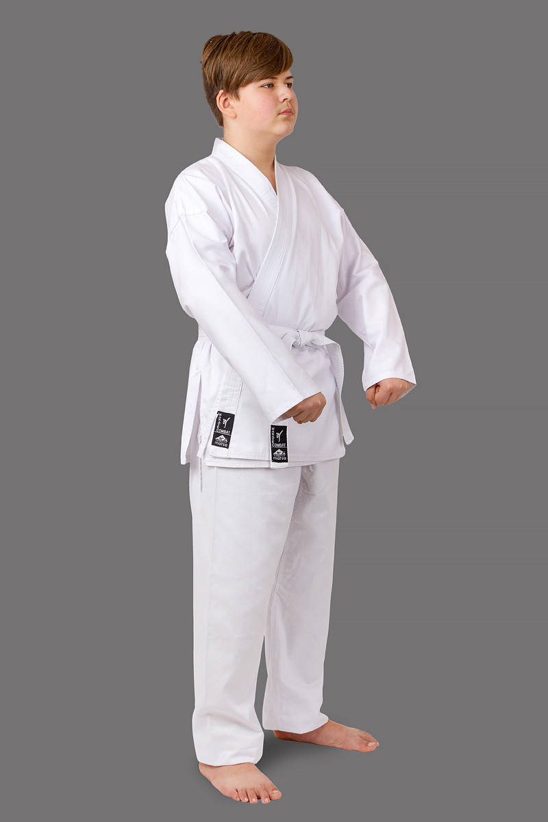 Кимоно для занятий каратэ,айкидо,джиу джитсу,рукопашного боя,а также дзюдо(если вес спортсмена до 50кг) белого цвета от ТМ Matsa и Combat Плотность 240 грамм на м2. Изготовлено из натурального материала – хлопка. Хлопковая ткань обеспечивает хороший воздухообмен и приятные тактильные ощущения. Оптимальная плотность ткани хорошо выдерживает значительное усилие на разрыв. Данный комплект вполне доступный по цене для новичков, а высокое качество кимоно оценят даже профессионалы. В комплект входят просторные штаны, снабженные эластичным поясом или завязками (зависит от размера), куртка классического кроя и длинный пояс. Для удобства внутри куртки имеются дополнительные внутренние подвязки. Эта свободная и легкая одежда для карате обеспечит полную свободу движений и необходимый комфорт. Подойдет как новичкам, так и опытным спортсменам. Кимоно хорошо прошито, имеет усиленные швы. Так, как и любое изделие из хлопка, кимоно дает усадку при стирке. Это необходимо учитывать при выборе размера, делая небольшой запас.