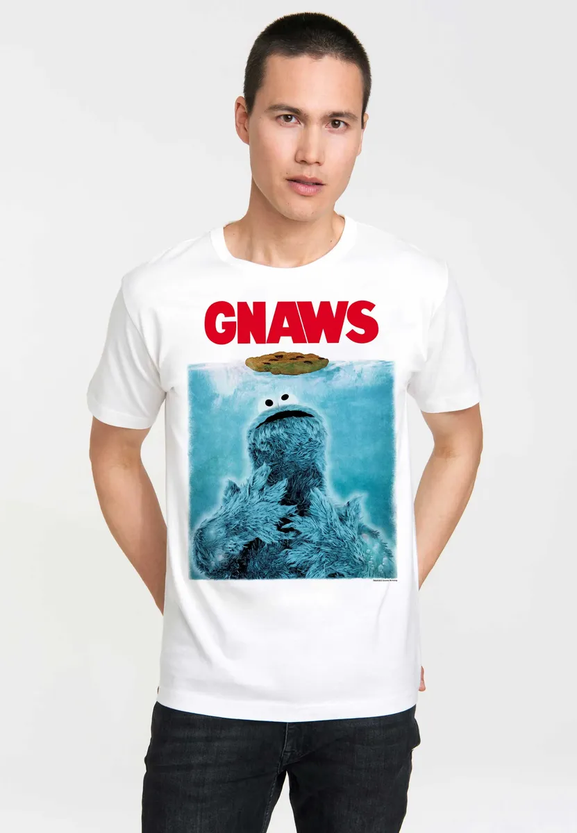 Футболка Logoshirt "Печенький монстр Улицы Сезам" с удобным круглым вырезом, белый