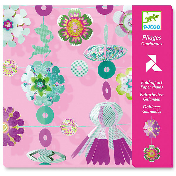Из цветной бумаги, используя ножницы, ребёнок сможет сделать различные узоры и фигуры, а соединив готовые детали, получится художественная инсталляция. Гирлянда используется для украшения комнаты. А всего можно создать 5 видов поделок. Набор развивает моторные навыки и мышление.