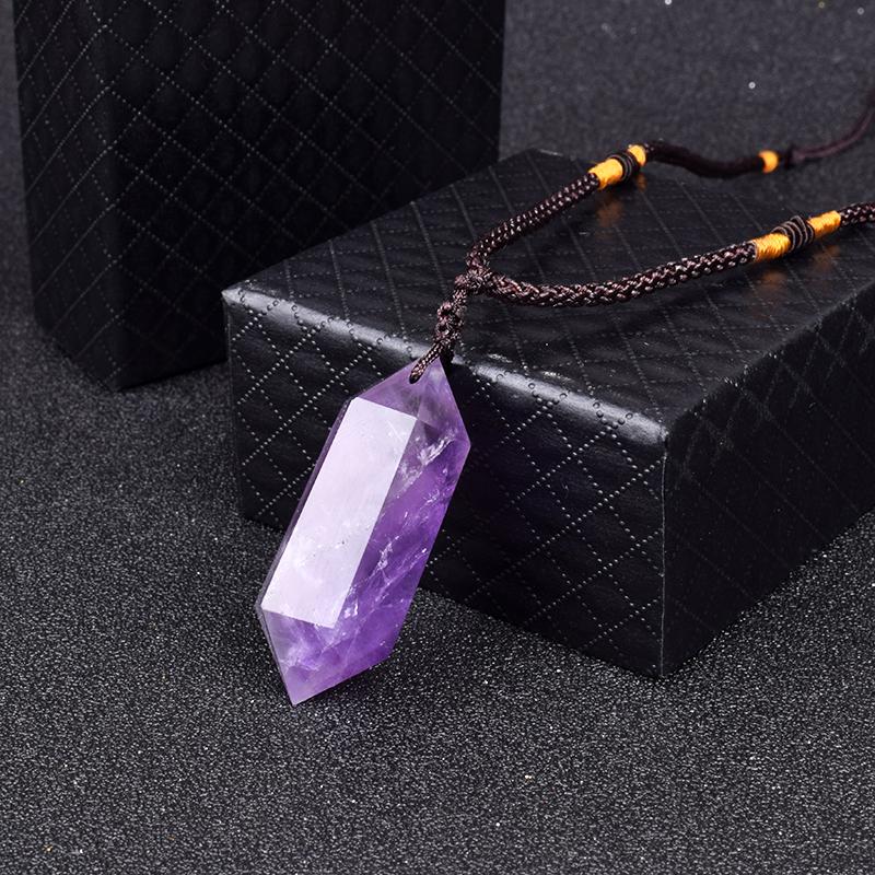 Pendant Necklaces Natural Purple Crystal Women Raw Amethysts Quartzs Pyramid Energy Stone Specimen Healing Gem Jewelry