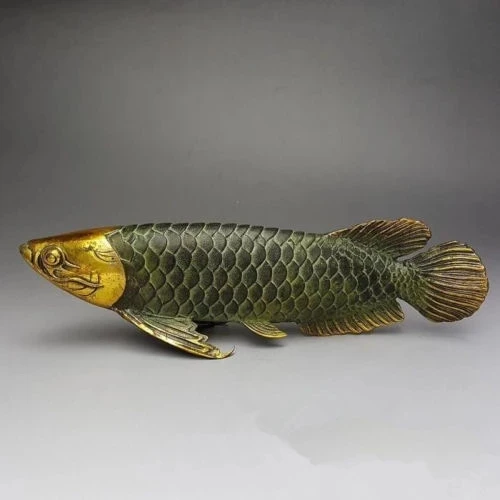 Китайская Бронзовая позолоченная старая ручная работа счастливая фотография рыба