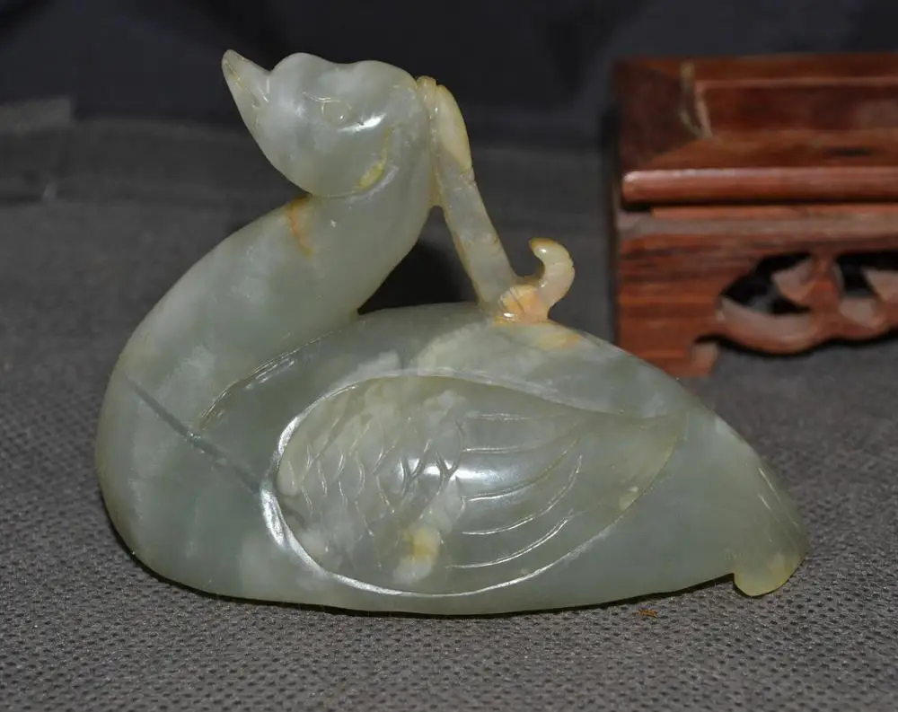 Китайская винтажная Статуэтка с большим сокровищам, Хэтянь, Нефритовый лебедь, животное, тотем, резьба, LLZB0522 Timestown 20201128A