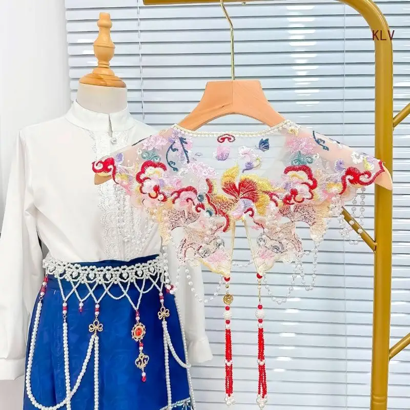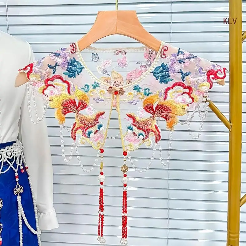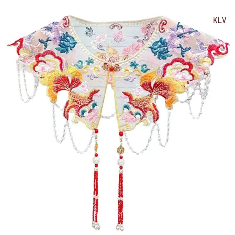 Китайская вышивка Yunjian шаль шарф жемчужная цепочка кисточки накидка с накладным воротником 6XDA