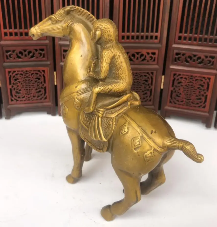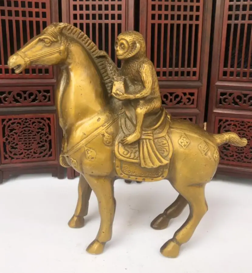 Китайская латунная Статуэтка с изображением обезьяны на лошади