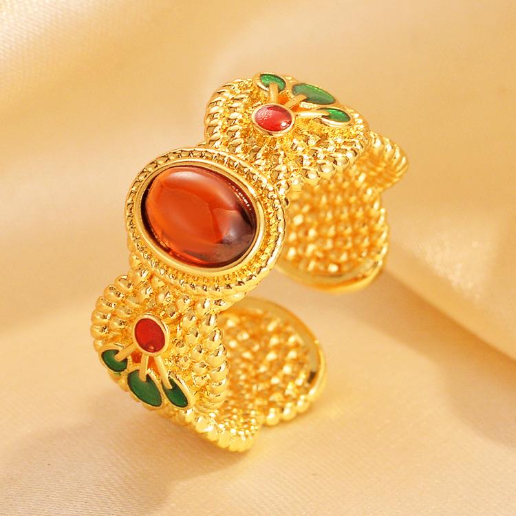 Китайская филигрань павлин имитация натурального халцедона кольцо открытие регулируемое кольцо ретро стиль суда легкие роскошные ювелирные изделия для женщин Opening adjustable золотой