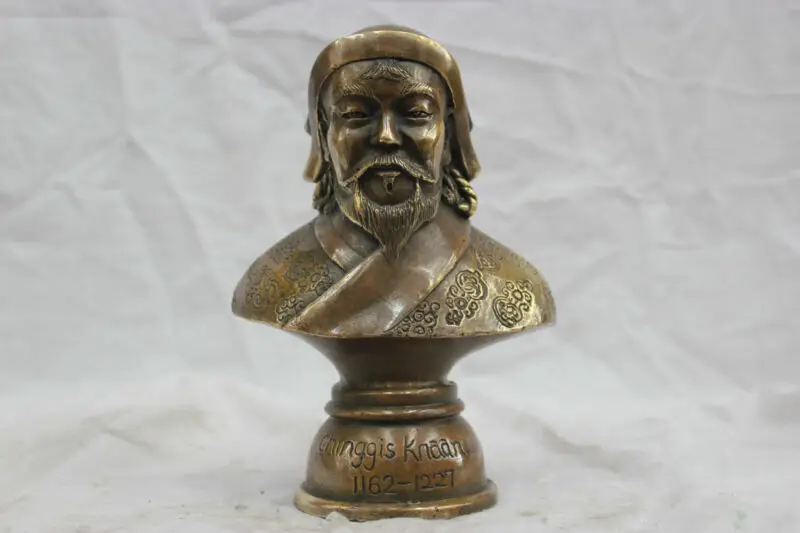 Китайские, из чистой бронзы Genghis Khan статуя резные благоприятные цветы