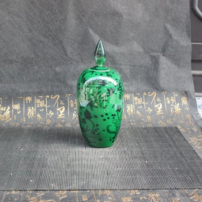Китайские старые зеленые глазурованные цветные фарфоровые банки с рисунком