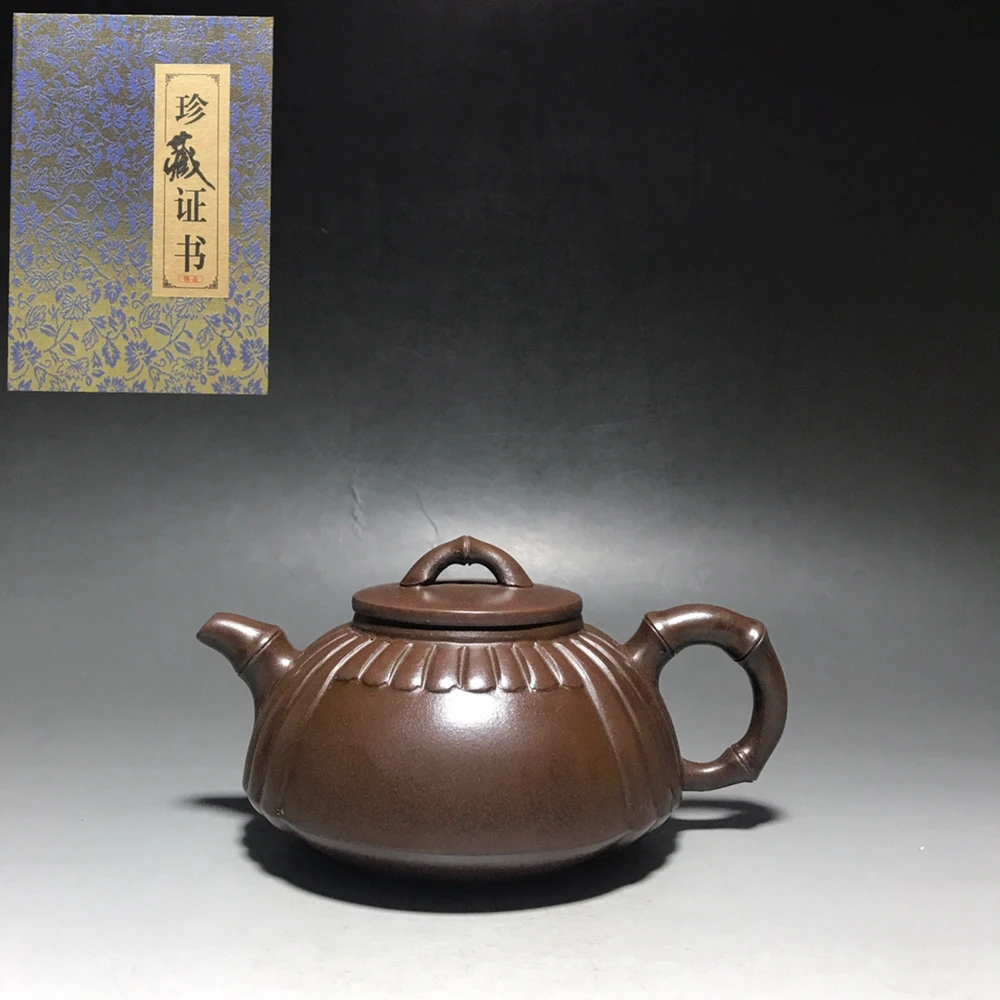 Китайский Глиняный Чайник Yixing Zisha, плоский бамбуковый чайник Gu Jingzhou 350 мл