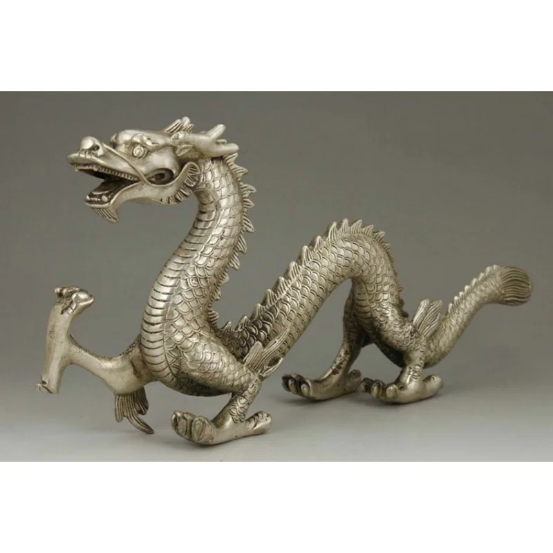 Китайский босс Серебряная Бронзовая статуя дракона ручной работы