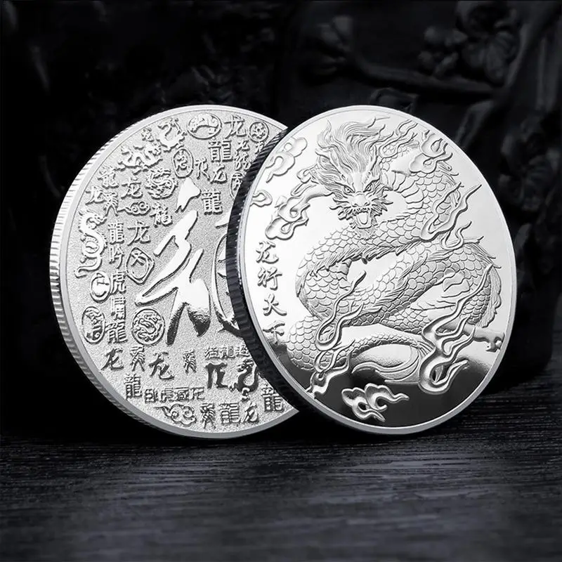 Китайский дракон, год 2024, позолоченные серебряные драконы, новый год, китайский талисман, сувенир