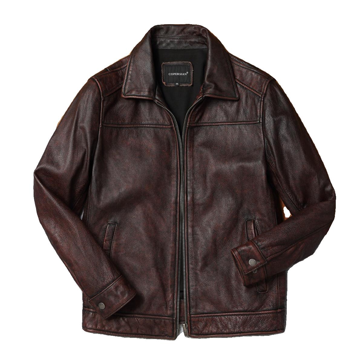 Китайский размер винтажная красно-коричневая мужская натуральная кожаная куртка из натуральной коровьей кожи короткая тонкая мужская кожаная куртка с отложным воротником весна осень 5XL