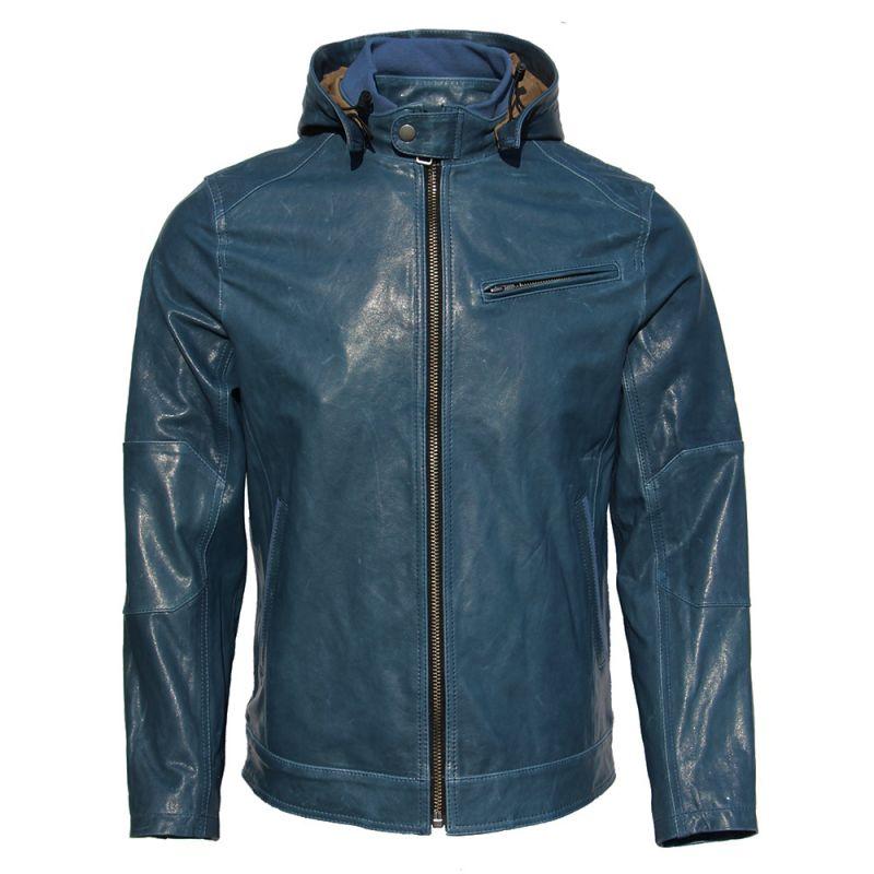 Китайский размер мужская куртка из натуральной кожи мужская съемный капюшон дубленая овчина толстое зимнее пальто из натуральной кожи пальто мотоцикл байкер одежда M синий