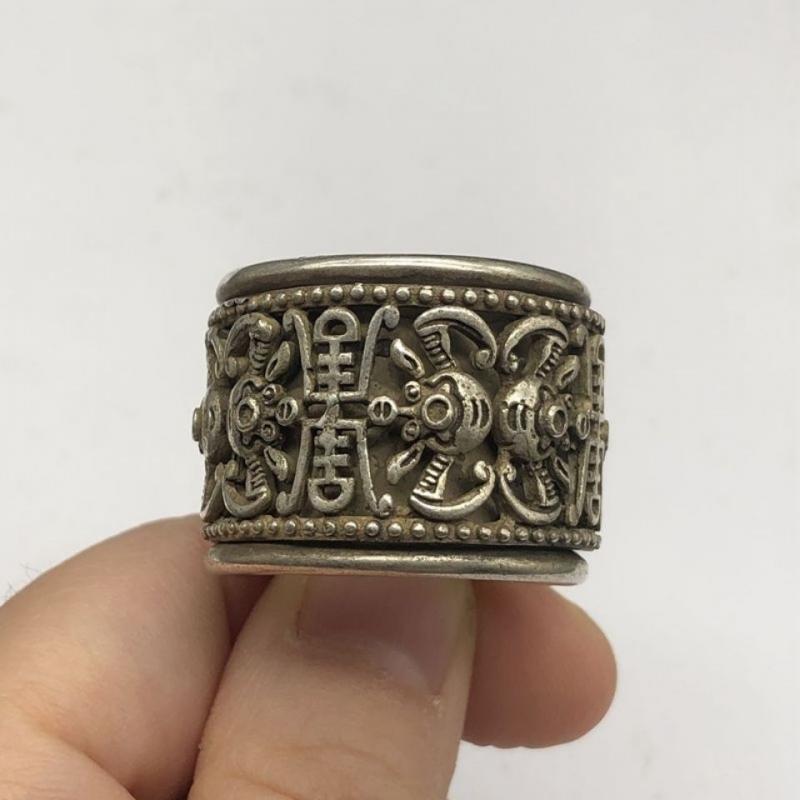 Китайское тибетское серебро ручной работы кольца на большой палец с летучей мышью украшение подарок старая коллекция CHINA