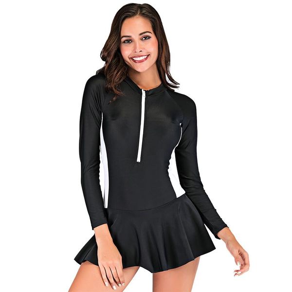 one-piece suits sbart thin section female swimsuit with chest pad conservative long-sleeved quick-drying skirt swimwear