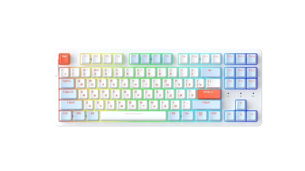 Клавиатура проводная Dareu A87X, механическая, BlueSky V3 switch, подсветка, USB, белый/синий (A87X Blue-White), A87X