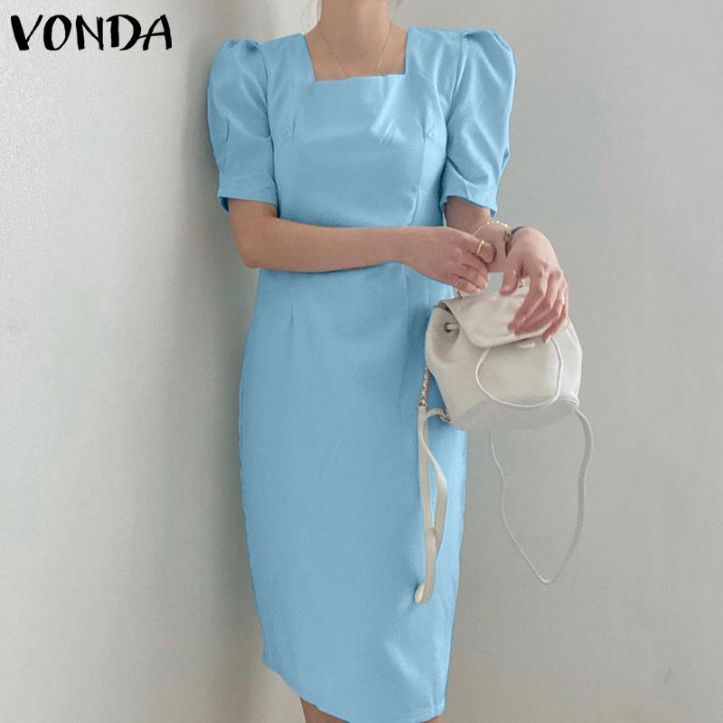 VONDA летние женские вечерние свободные длинные платья H-Line сплошной цвет повседневное платье макси с короткими рукавами-фонариками плюс размер