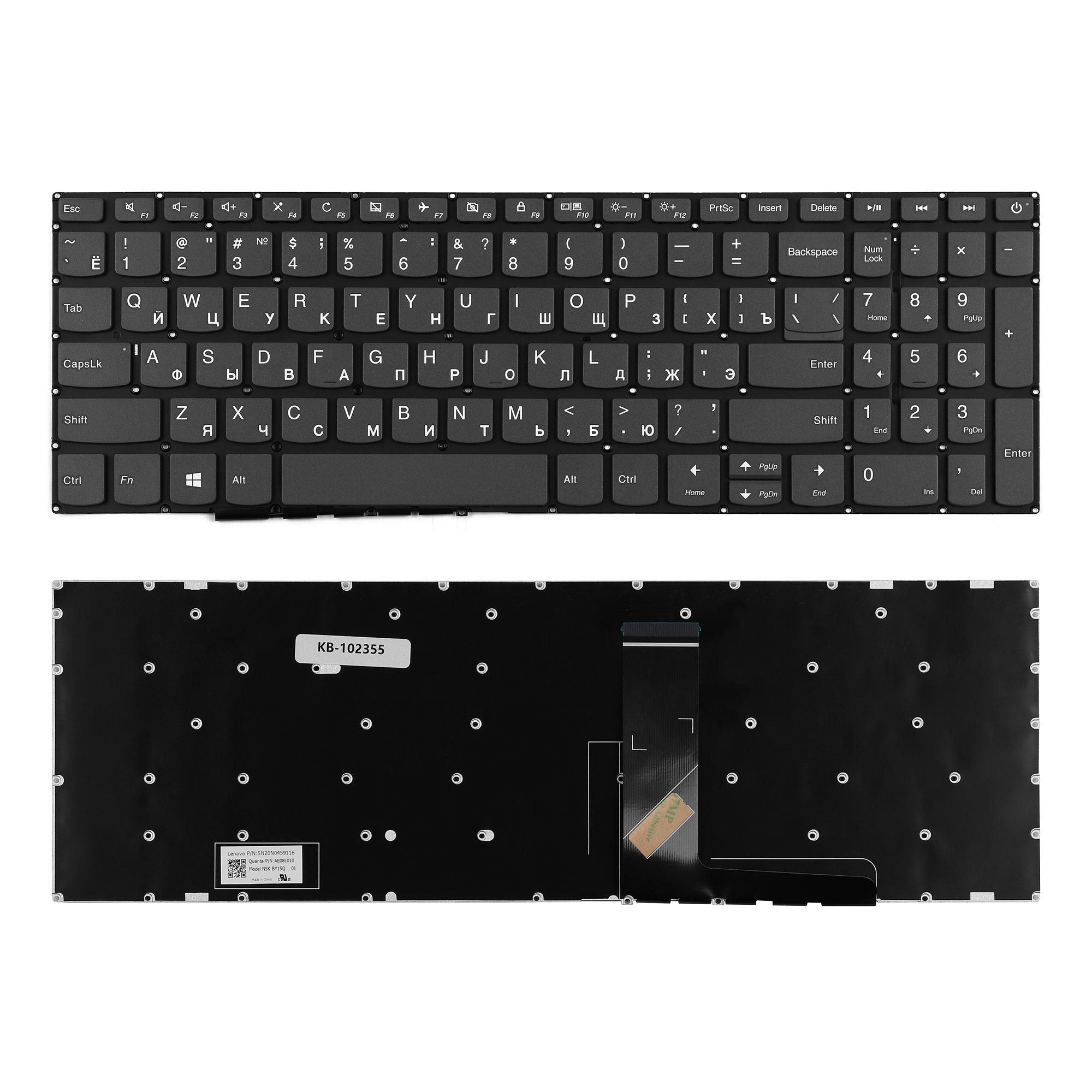 Клавиатура TopON для Lenovo IdeaPad 320-15ABR, 320-15AST Series, плоский Enter, черная, без рамки (KB-102355), KB-102355