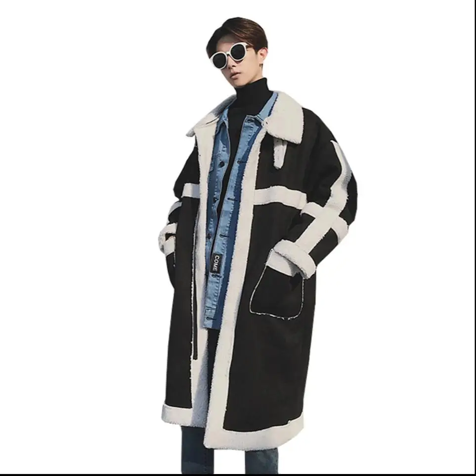 New Men Winter Suede Lambs Wool Motorcycle Fur Coat Warm Windbreaker Black And White Spliced Jacket Young Tide Cotton Overcoat