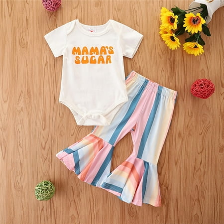 Colored Bell Bottoms Toddler Girls Outfits Two Piece Printed Top Sportswear Spring Summer Cute Casual Cartoon Fashion Outwear Streetwear Vocation Sets