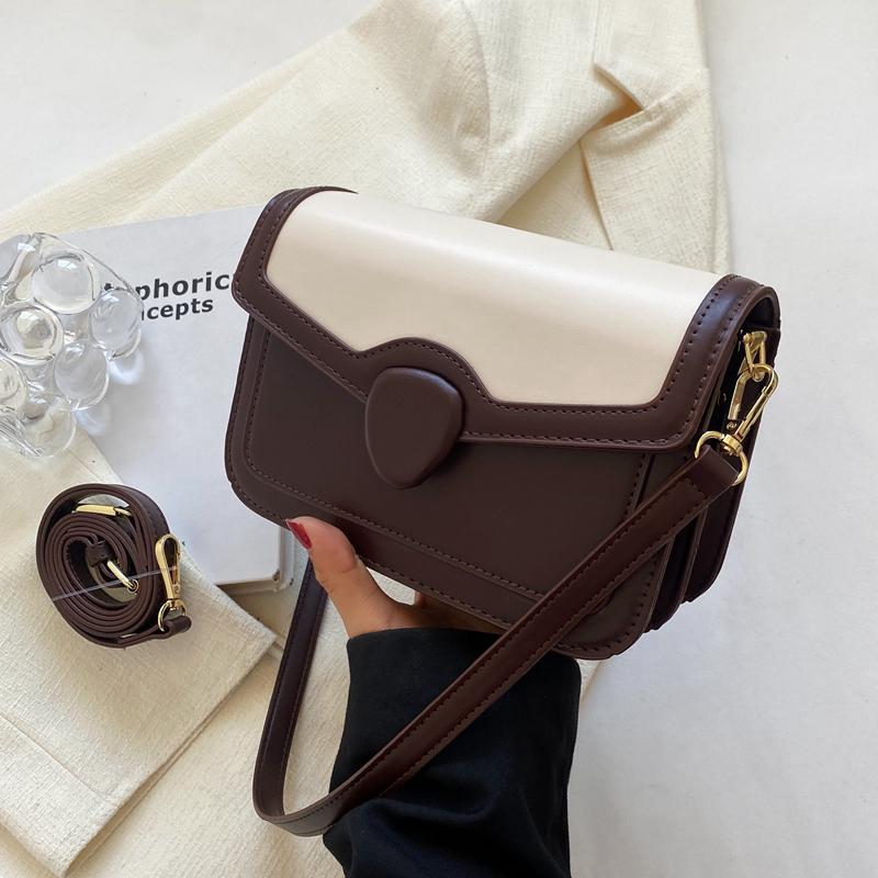 Классическая винтажная коричневая маленькая квадратная сумка, новая женская сумка через плечо на осень/зиму, контрастная, элегантная, универсальная сумка через плечо