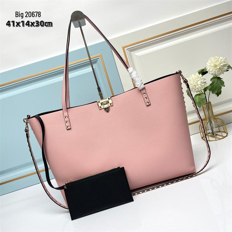Классическая большая сумка-тоут из телячьей кожи с заклепками и наплечная сумка кроссбоди розовый