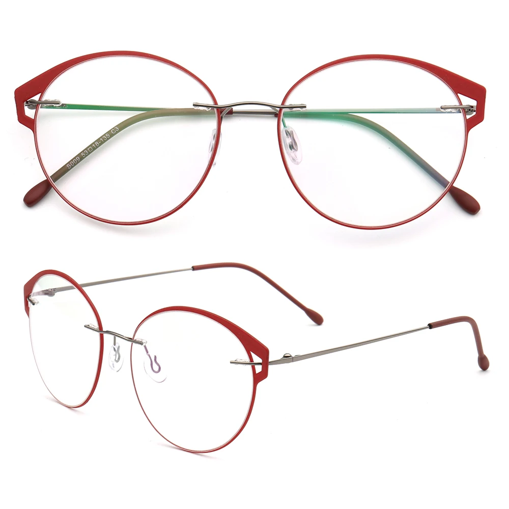 Классические Круглые Женские оправы для очков без оправы, мужские металлические оправы для очков, оптические очки, черные легкие очки Rx, красные, синие