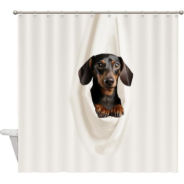 Классические Смешные Шторки для Душа - Такса, Отдыхающая на Белой Подвешенной Ткани, Полиэстеровая Ткань, Набор для Декора Ванной Комнаты с Крючками - 72X72 Дюйма