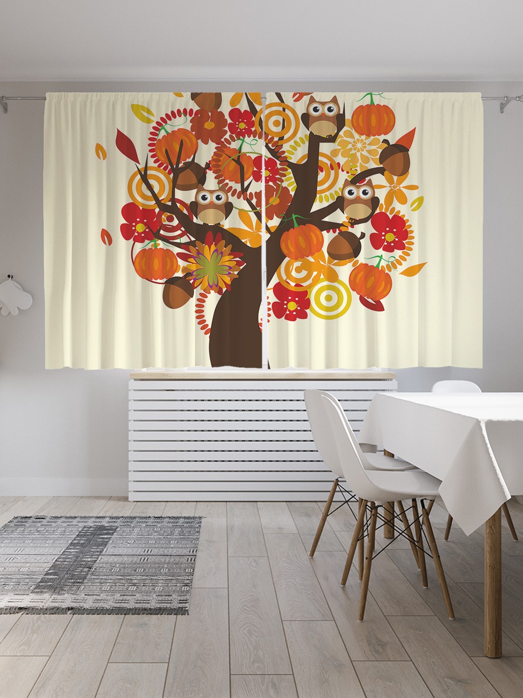 Классические шторы JoyArty "Дерево Благодарения", серия Oxford DeLux, 2 полотна 145x180 см, Дерево Благодарения