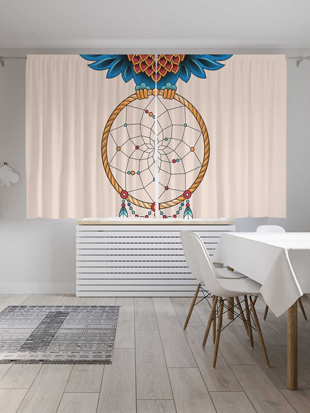Классические шторы JoyArty "Ловец снов с совой", серия Oxford DeLux, 2 полотна 145x180 см, Ловец снов с совой