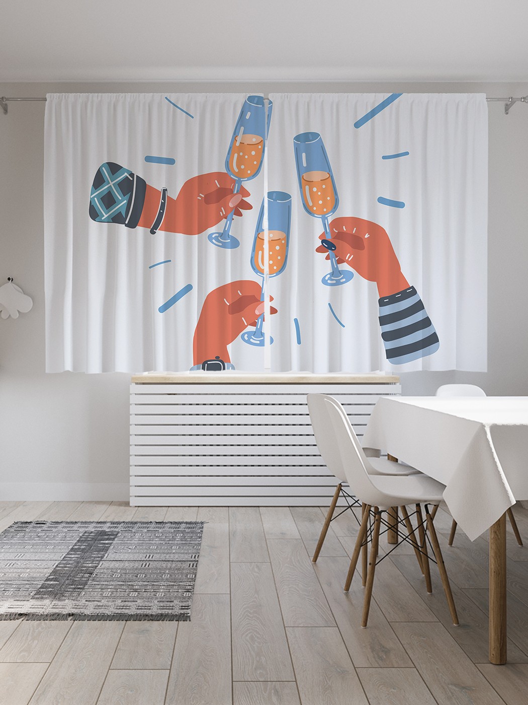 Классические шторы JoyArty "Праздничные бокалы", серия Oxford DeLux, 2 полотна 145x180 см, Праздничные бокалы