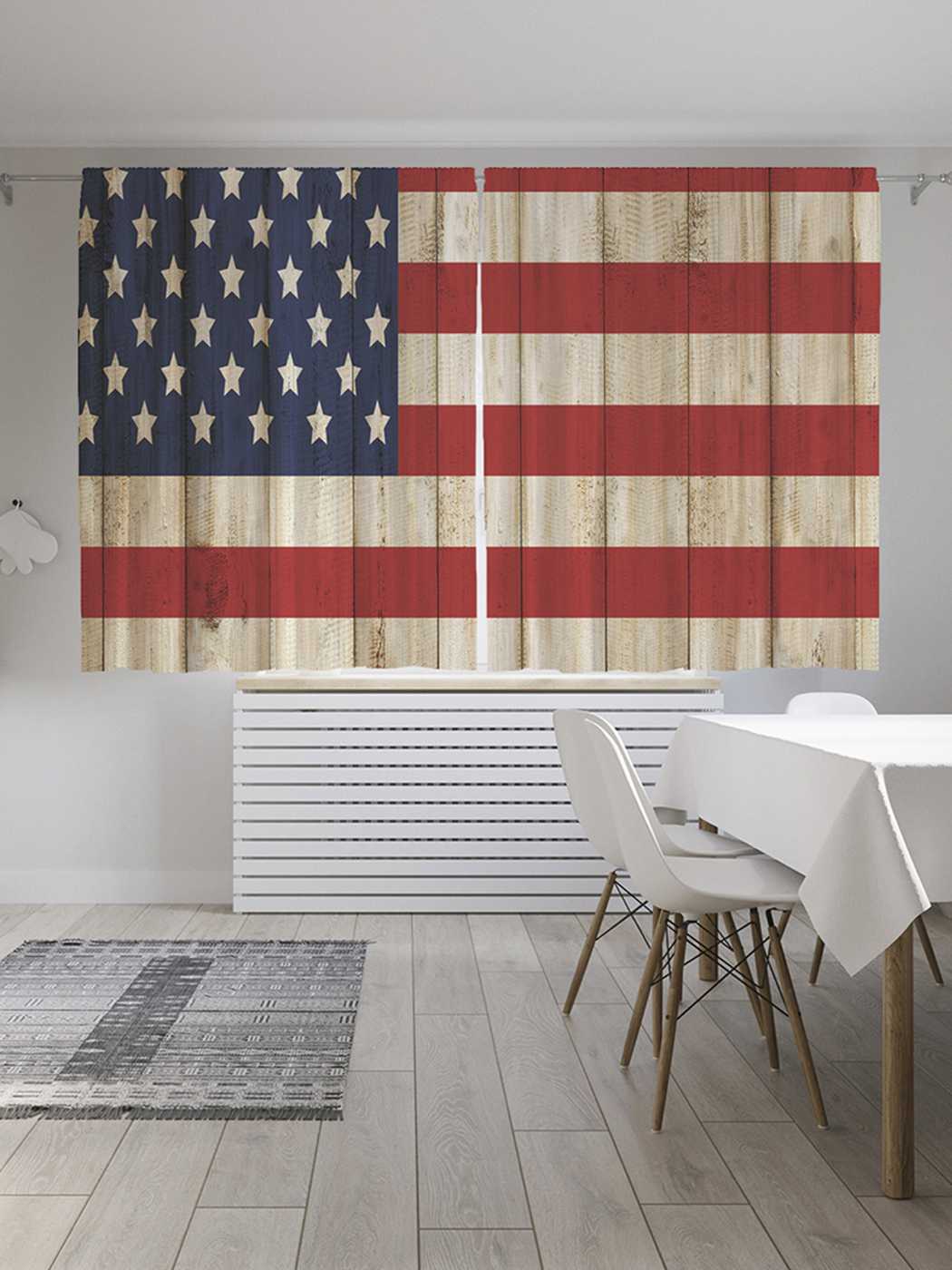 Классические шторы JoyArty "Флаг США на вагонке", серия Oxford DeLux, 2 полотна 145x180 см, Флаг США на вагонке