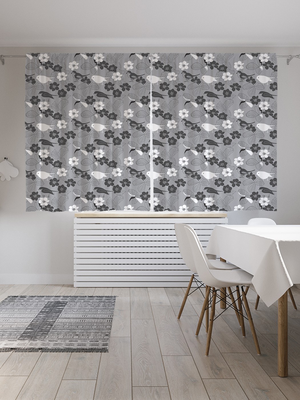 Классические шторы JoyArty "Цветущая клубника", серия Oxford DeLux, 2 полотна 145x180 см, Цветущая клубника