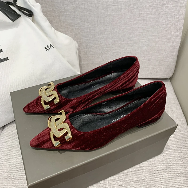 Классические элегантные офисные женские туфли без шнуровки с острым носком и золотым металлическим украшением; Туфли-лодочки с закрытым но...