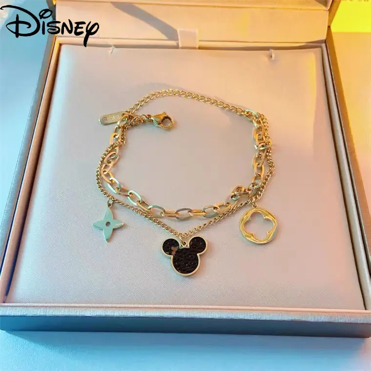 Классический Новый браслет Disney 2022 с двойной цепочкой Микки из титановой стали