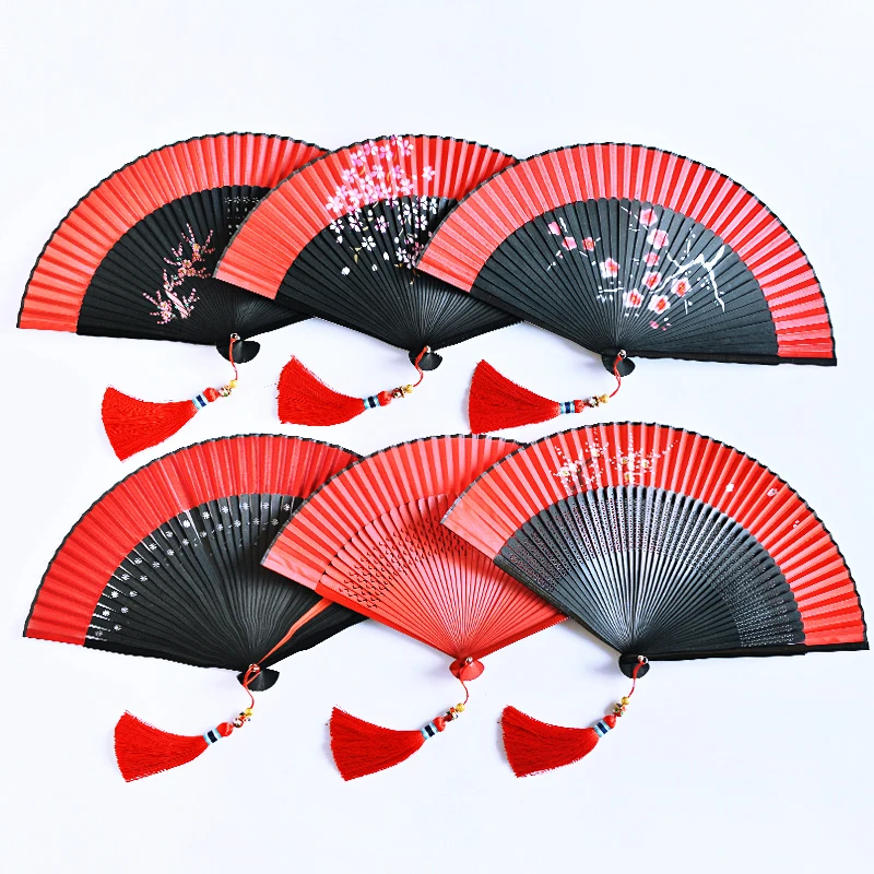 Классический женский складной Ручной Веер, летний бамбуковый Ручной Веер ручной работы в китайском стиле ханьфу