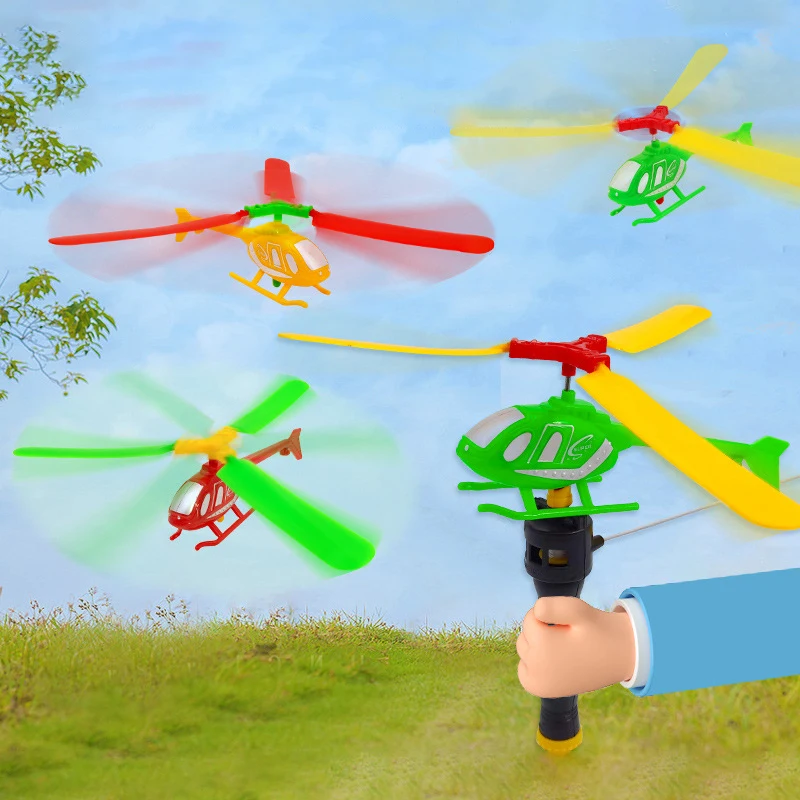 Классический игровой вертолет с ручкой для игр на открытом воздухе, вертолет с вытяжным шнуром, маленький самолёт, интерактивные развивающие игрушки, подарок для детей