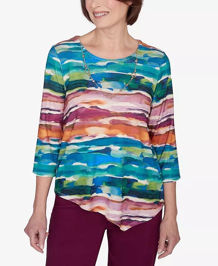 Классический топ-биадер акварельного цвета с колье Alfred Dunner, мультиколор