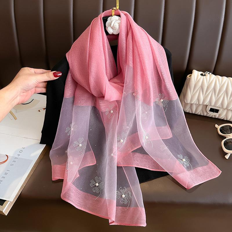 Классический шелковый шарф с вышивкой, элегантная шаль с цветочной вышивкой, дышащая ветрозащитная повязка на голову, солнцезащитное пляжное полотенце для путешествий 190**70cm