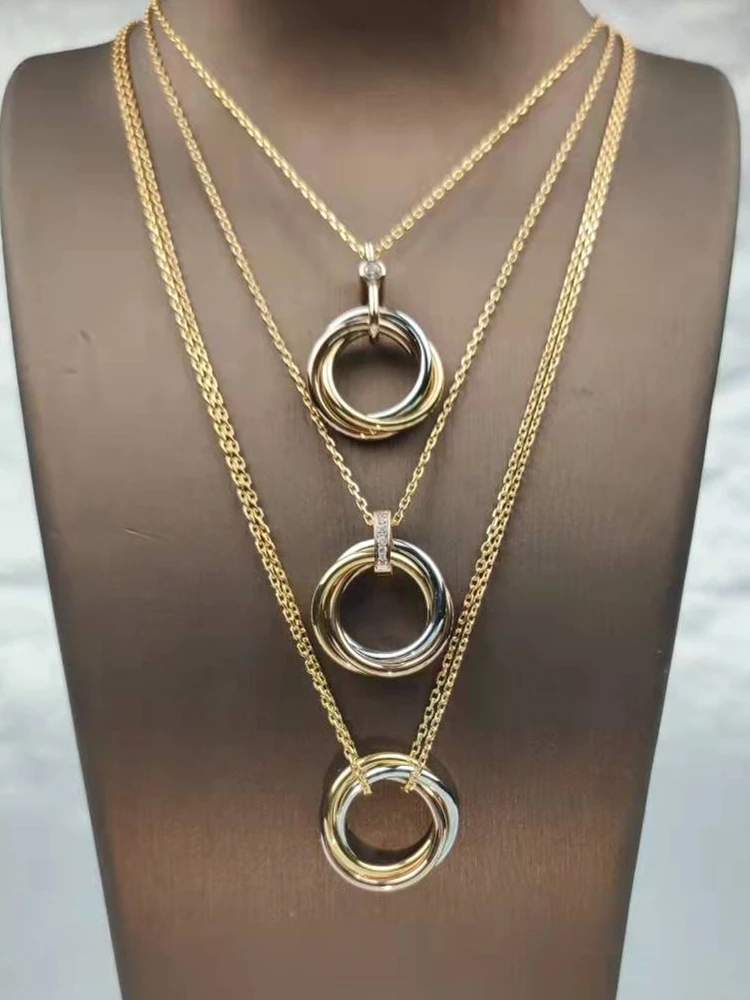 Классическое трехцветное колье в европейском и американском стиле из серебра 925 пробы