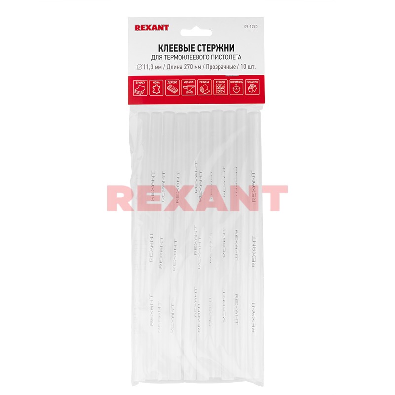 Клеевые стержни REXANT 09-1270 1.13 см x 27 см, прозрачный, 10 шт., блистер (2640038394)