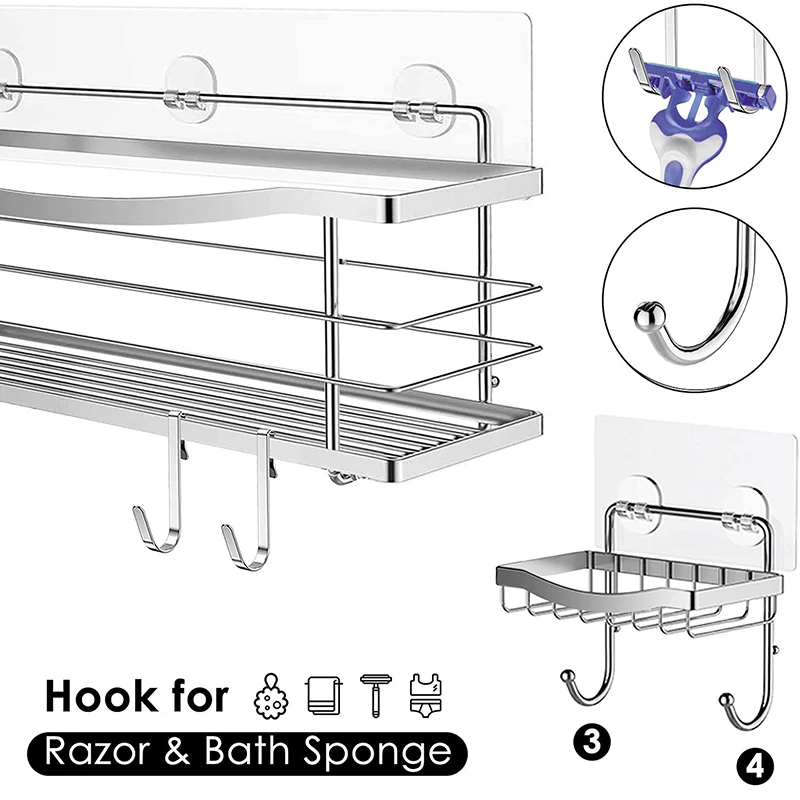 Клейкая корзина для душа, полка для шампуня, кондиционера, губки, бритвы, мыла, посуды, органайзер для кухни, ванной комнаты, без сверления E7