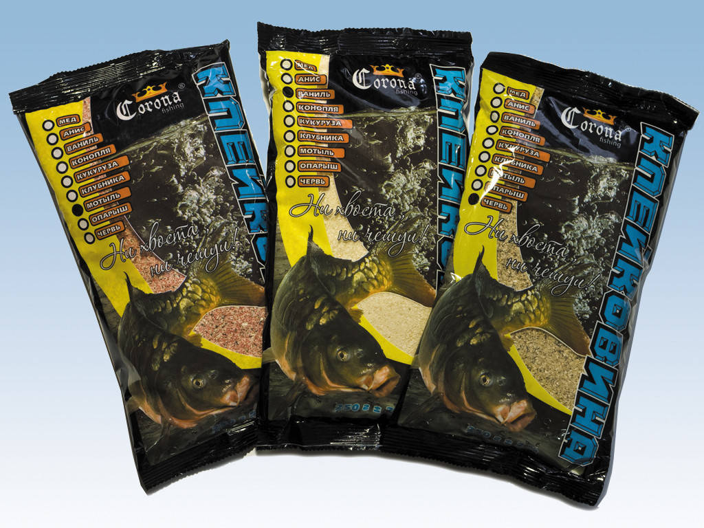 Клейковина «Corona» предназначена для получения высококачественной и эффективной ароматизированной прикормки для ловли мирной белой рыбы (карпа, карася, леща, плотвы и т.д.) Одного пакета клейковины «Corona» (250 г) достаточно для получения 1 кг прикормки, обладающей достаточным количеством белков, протеинов,аминокислот и необходимых вкусовых элементов для привлечения и удержания данных видов рыб в зоне ловли. Клейковину «Corona» можно использовать для приготовления прикормок как в летнее так и в зимнее время (червь, мотыль, опарыш). Большой ассортимент ароматизаторов позволит Вам учесть особенности сезона и местной привязанности к запахам прикормок. Для получения качественной и эффективной прикормки достаточно добавить к Клейковине «Corona» 750-800 г молотых злаковых культур (пшеницы, кукурузы, гороха, зерен конопли, жмыха, подсолнуха и т.д.) и развести с водой. Можно приправить готовую прикормку рубленым червем, мотылем, опарышем.