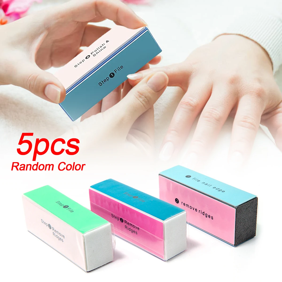 5pcs Four-sided Nail Rubbing Polishing Strips Four-square Block Playing Abrasive Strips Sponge Tofu Block Manicure Nail Tools