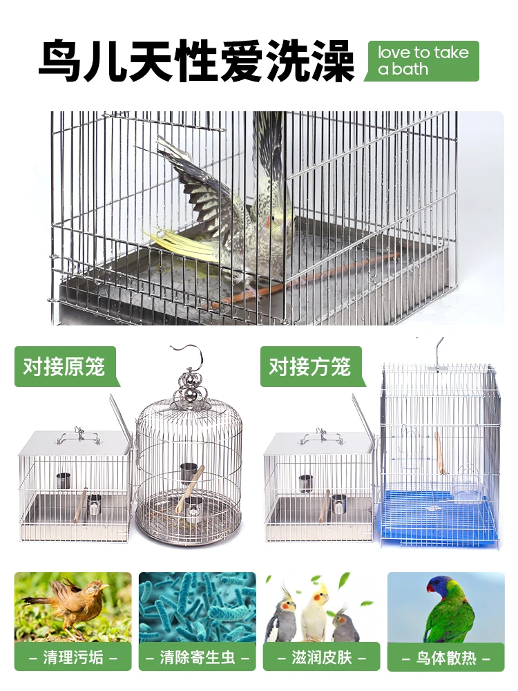 Клетка для ванны из нержавеющей стали, квадратная уличная клетка для пионов, попугаев, белых глаз, птиц, раковина для ванны
