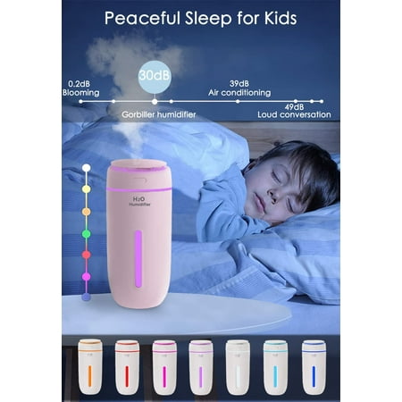 Humidifier for Bedroom 400ml Small Humidifier with 7 Colors Night Light Portable Mini Air Humidifier for Bedroom Car Quiet Office Travel Auto Shut-Off 2 Mist Modes