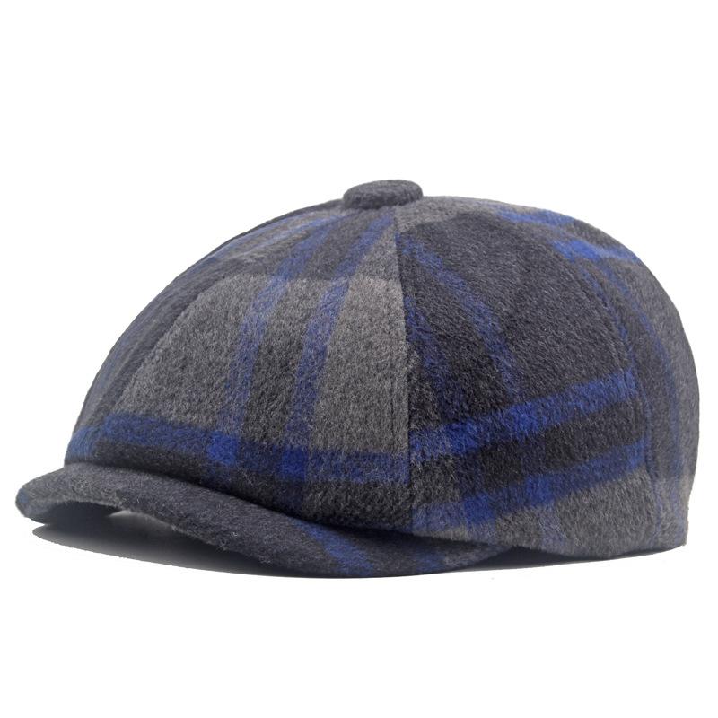 Клетчатая восьмиугольная шляпа, берет, осень-зима, мужская теплая шляпа вперед, шерстяная клетчатая шляпа газетчика, британская женская шляпа маляра серый
